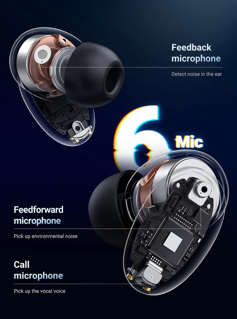 Appels ultra clairs : passez des appels clairs où que vous soyez. Les écouteurs Bluetooth à réduction de bruit active HiTune X6 sont dotés de Real Clear Voice 4.0, de 6 micros et utilisent un algorithme pour capturer avec précision votre voix en temps réel, tout en éliminant 90 % du bruit ambiant.